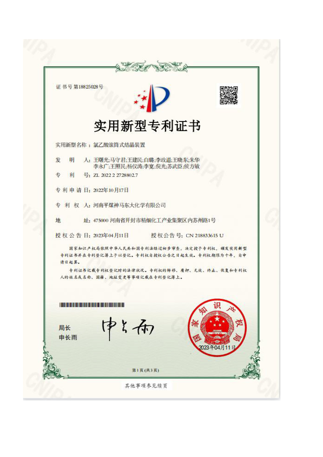 實用新型專利證書